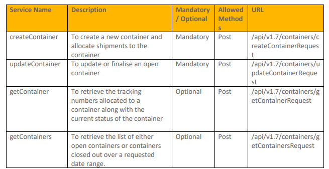 Containerisation API Specification Document describes the Intelligent Shipper Containerisation / A-Scan APIs, which allow shipments to be grouped into containers. This is so that the shipments in the container are grouped together in Intelligent Shipper, and the shipments can all be manifested at once by closing the container.